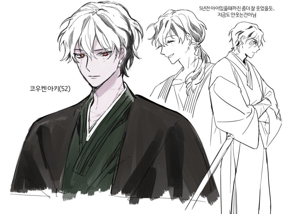 맨날 성별모호한 남캐만 그려서 이번엔 예쁜 남캐를 목표로 햇죠 헤헤 딤님한테 예쁨받았다~~ 장발남..이었는데 나이들어서 머리는 짧아졌어요